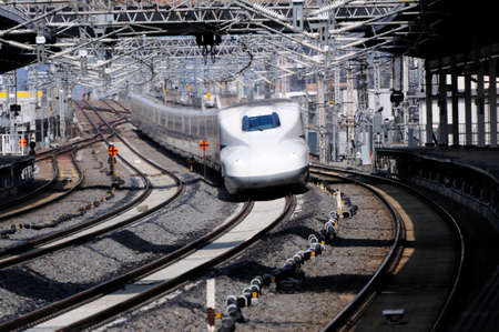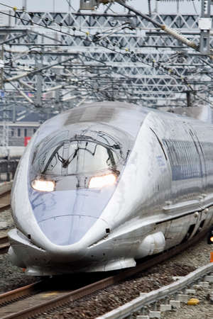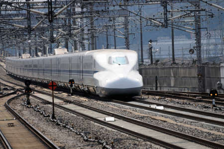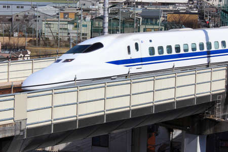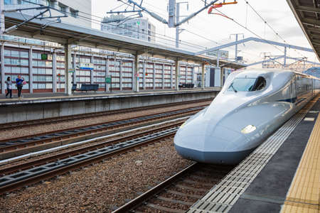 HIMEJI, JAPAN - MARCH 28: Shinkansen on March 28, 2015 in Himeji, Japan. The Shinkansen is a network of high-speed railway lines in Japan operated by four Japan Railways Group companies.