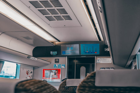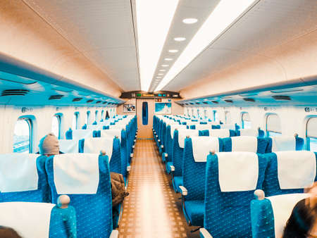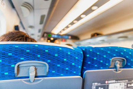 HOKKAIDO,JAPAN -APRIL 19,2016: Ordinary seats of H5 Series bullet(High-speed or Shinkansen) train. H5 Series is brand new train, enter service in March 26,2016 for Hokkaido Shinkansen line(Tokyo - Hakodate route).