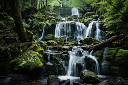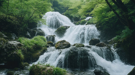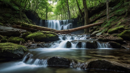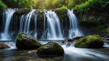Waterfall Landscape with Moss-Covered Rocks - Serene Cascades and Natural Beauty
