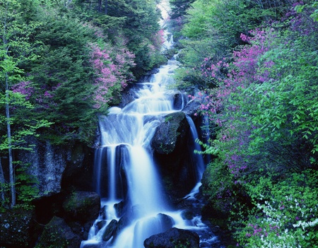 natural scenery of waterfalls in japan.