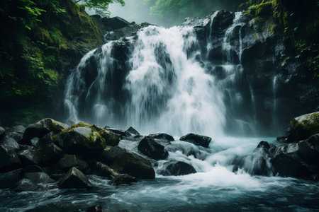 Beautiful waterfall in the forest, long exposure photo with shallow depth of field, waterfall in the forest , AI Generated