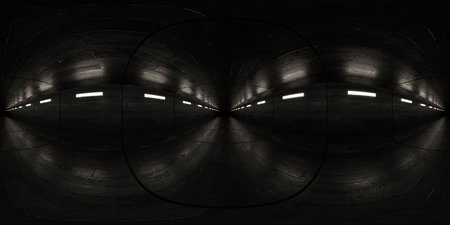 Dark corridor with wooden walls and dim lighting 360 vr panorama