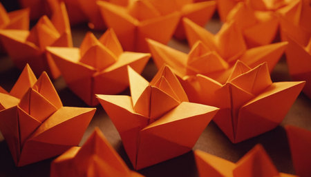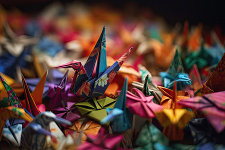 close-up of intricate origami craft with colorful paper, created with generative ai