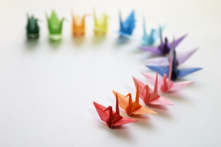 many pastel tone Miniature Traditional Japanese Origami Paper Cranes