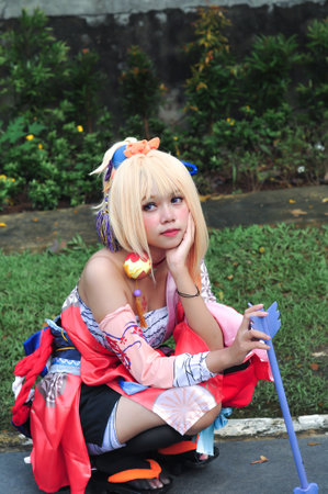 Unidentified Japanese anime cosplay pose in Bangkok, Thailand