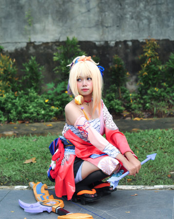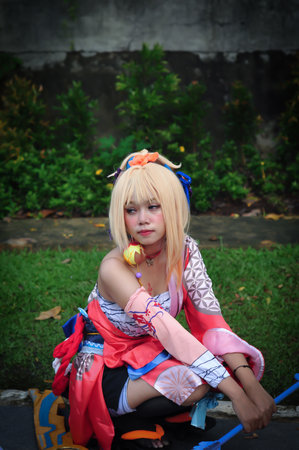 Unidentified Japanese anime cosplay pose in Chiang Mai, Thailand.
