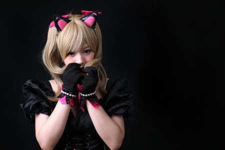 Portrait of Japan anime cosplay girl isolated in black background