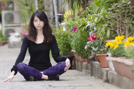 Japanese Girl poses on the street in Toranomon, Japan. Toranomon is a business district in Tokyo.