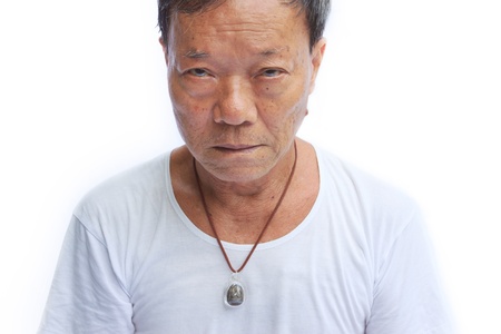 Sad face of Southeast East Asian man standing with hands in the pockets while looking at the camera with bokeh background