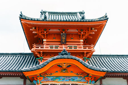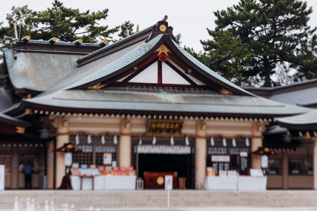 Matsuyama, Japan - May 22, 2025 The Main Hall Honden of Isaniwa Jinja, a Shinto shrine in Matsuyama city. High quality photo