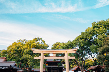 Meiji Jingu shrine Torii gate in Tokyo, Japan
