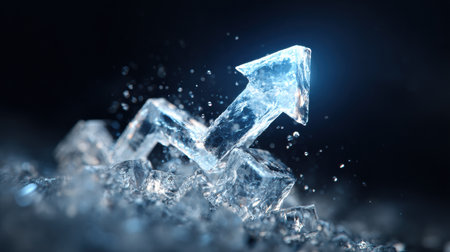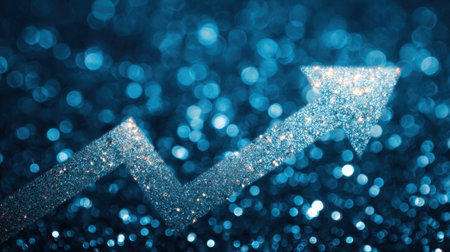 Sparkling blue background features rising arrow, symbolizing growth and success. shimmering effect adds sense of optimism and achievement to image