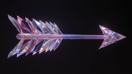 Crafted from translucent material, this crystal arrow features a complex design with angular feathers reflecting light creatively, emphasizing artistry.