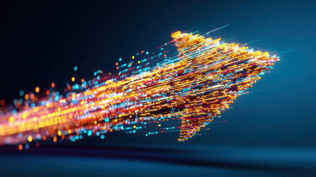 An abstract glowing arrow in motion conveys themes of direction and progress. This image is ideal for projects focused on technology, innovation, and creativity.