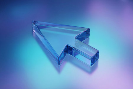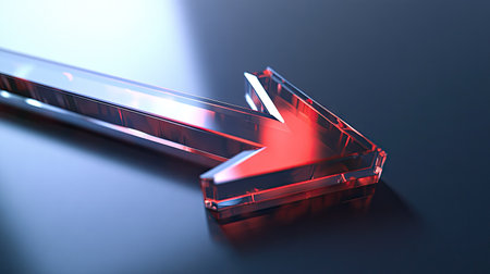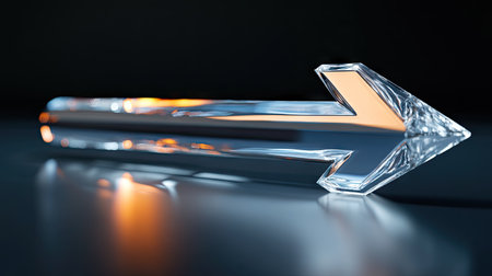 Elegant transparent arrow design rests on a reflective dark surface, capturing light beautifully. Perfect for business concepts, motivation, and modern visuals.