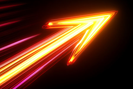 A dynamic digital illustration of a glowing arrow pointing right with streaks of vibrant light trails behind it.