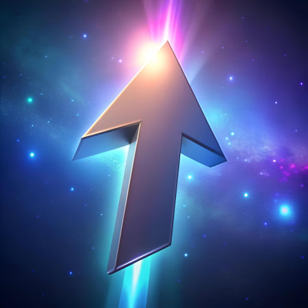 A stunning graphic of a glowing arrow rising upward, surrounded by sparkling particles. This image symbolizes success, growth, and positive energy in dynamic designs.