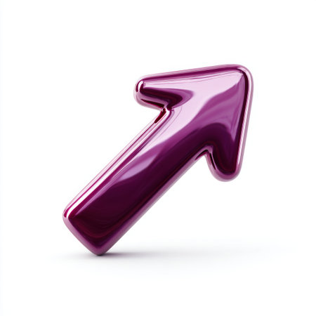 A glossy purple arrow pointer stands prominently, symbolizing growth and progress. This 3D graphic element features a sleek and modern design, ideal for various creative projects.
