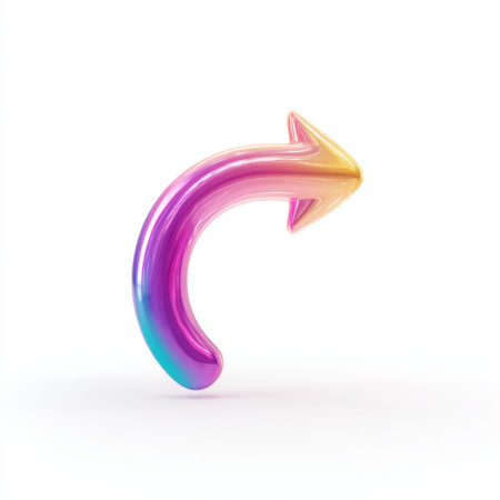 This vibrant 3D arrow design curving to the left features a smooth gradient of colors, perfect for modern and creative projects, visualization, and navigation.