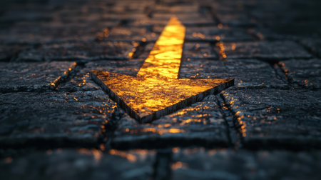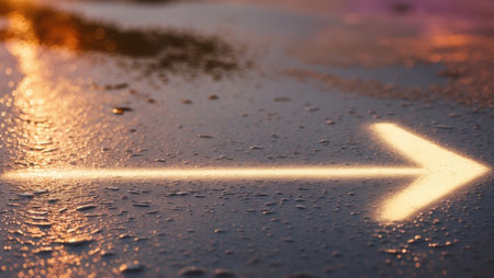 AI Generated. Glowing Arrow Direction on a Wet Surface at Sunset