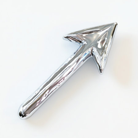 A D illustration of a single metallic arrow featuring a smooth surface and realistic shadows displayed against a minimal background with vibrant silver tones