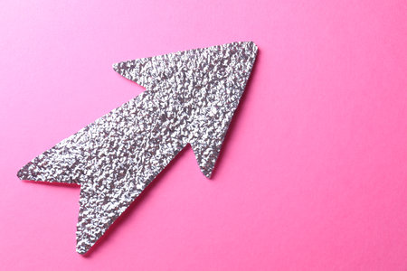 A sleek. metallic arrow pointing upwards against a textured background. Perfect for business presentations. web design. and social media graphics. emphasizing growth and progress.