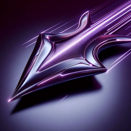 A sleek, illuminated crimson arrow cuts through a high-tech backdrop, surrounded by streaks of light and shimmering bokeh, symbolizing innovation and momentum.