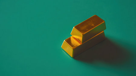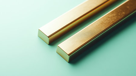 Two elegant gold bars rest on a soft mint background, creating a minimalistic yet striking visual. Ideal for themes related to finance, luxury, and design.