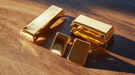 Two gleaming gold bars rest elegantly on a smooth surface, reflecting soft light and embodying concepts of wealth, luxury, and investment.