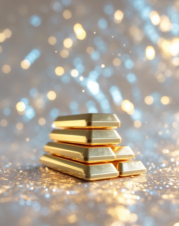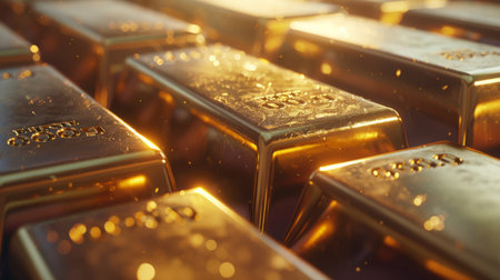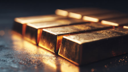 AI Generated. Gold bars representing economic stability and wealth on glittering background