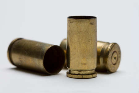 Three bullet shells against white background, horizontal