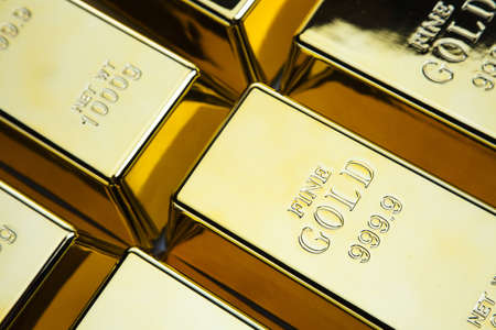 Precious shiny gold bars. Background for finance banking concept. Trade precious metals. Bullions.
