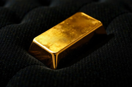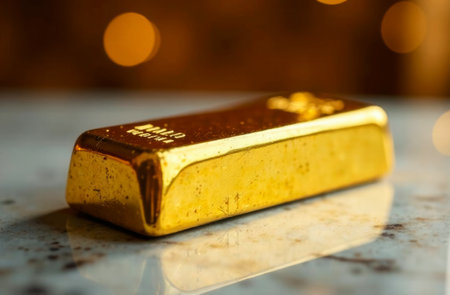 A beautifully crafted gold bar rests on a dark, textured surface, exuding luxury and elegance. This captivating image captures themes of wealth and investment, perfect for financial content.