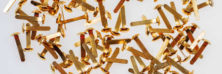 Lots of golden clips to close envelopes. Panoramic image