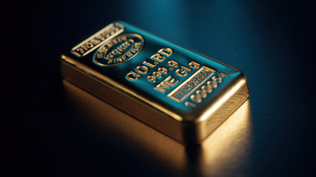 Close-up of a gold bullion bar stamped with purity and weight, representing tangible wealth and financial security