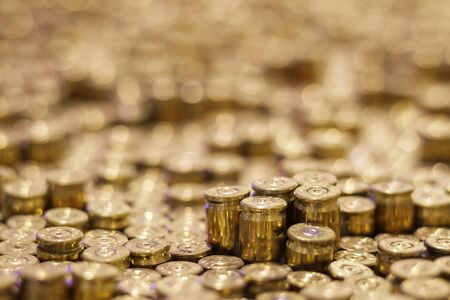 Rows of the bullets with blurred background, selective focus