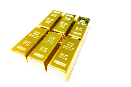 Gold bars on a white background. Shallow depth of field.