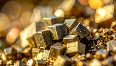 A visually appealing arrangement of scattered golden fragments on a smooth surface, perfect for use in luxury design projects or creative artwork.