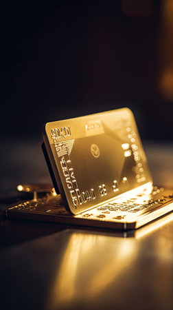 Gold luxury Credit card or crypto wallet on table. Ai generative