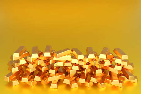 bunch of gold bars, 3d rendering