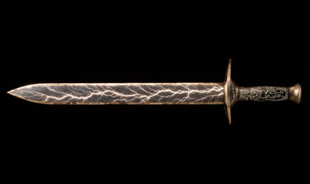 Explore the beauty of this ornate sword featuring intricate designs and a stunning dark background, highlighting craftsmanship and cultural significance.
