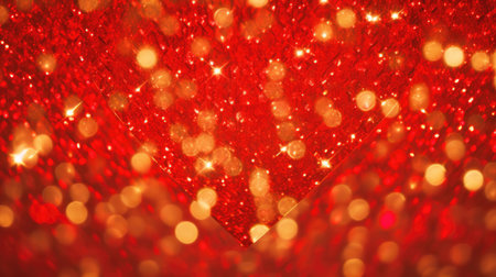 A dazzling red background featuring a bokeh effect with blurred lights and sparkling glitter, creating a festive and glamorous atmosphere.