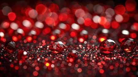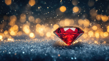 A stunning red gemstone sparkles on a glittering surface, surrounded by a beautifully blurred bokeh background. This image captures the essence of elegance and luxury, perfect for celebrations or artistic themes.
