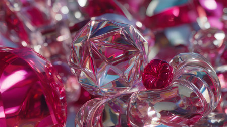 Vibrant pink gemstones shine brilliantly in a captivating arrangement, showcasing their intricate crystal structures and reflecting light beautifully. Perfect for design projects.