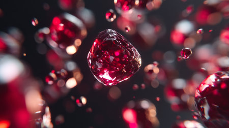 This close-up image showcases mesmerizing red gems with vibrant colors and intricate textures. The stunning sparkle and reflections create a luxurious and artistic atmosphere.