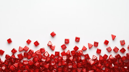 This captivating image features vibrant red gems scattered on a glossy surface, showcasing stunning reflections and intricate details, perfect for creative designs.