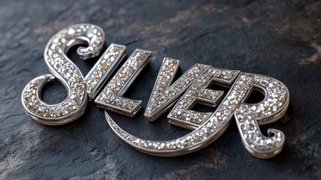 Shiny, Sparkly Silver Text Effect on Dark Background Ideal for Luxury Designs and Decals