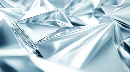 This image features abstract silver geometric shapes with sharp edges, creating a sleek and modern aesthetic ideal for backgrounds and textures. Suitable for creative projects.