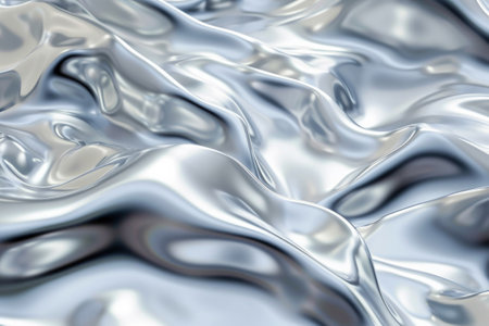 Captivating image of a smooth and shiny silver fabric texture, featuring elegant waves and reflective surfaces that create a mesmerizing visual effect.