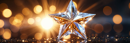 A stunning crystal star reflecting light on a sparkling surface in a blurred background. Ideal for depicting elegance, beauty, and celebration themes.
